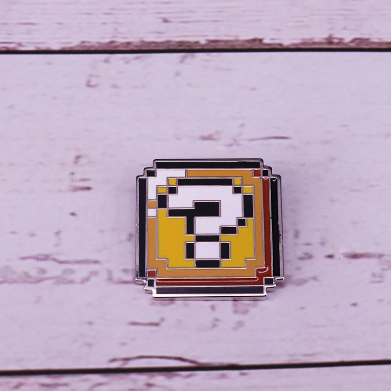 Mario pixel question mark brooch retro Nintendo geek gamer decor